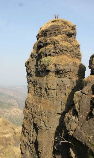 Next स्टेशन पर्यन्तचा route direction बदलून डाविकडे वळून निवडूंगात जाणारा आणि दरम्यान peg ठोकत आणि loose rock चा सामना करत जाणारा होता. ह्या प्रकारच्या माहुली special climbing ला टक्करीचे उत्तर देत आणि प्रसंगी थोडक्यासाठी घेतलेल्या fall बद्दल स्वत:शी झगडून अभ्या second station ला पोहोचला.